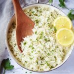 Reheat the rice gently to keep it fluffy—either in a skillet over low heat with a splash of water or broth to restore moisture, or in the microwave covered with a damp paper towel. Give it a gentle fluff with a fork once warmed through, and add a little more fresh lemon juice or herbs if you want to brighten it back up.