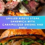 How to Serve Grilled Ribeye Steak Sandwich with Caramelized Onions, Mushrooms, and Roasted Red Pepper Aioli Recipe
