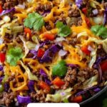 This Ground Beef Taco Cabbage Skillet is a quick and flavorful low-carb meal perfect for busy weeknights. Ground beef is cooked with shredded cabbage and seasoned with a zesty taco spice blend, then topped with melted cheddar cheese for a comforting, protein-packed dish that’s both satisfying and easy to prepare.