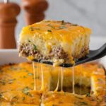 Cover the dish with aluminum foil and bake for 30 minutes. After that, remove the foil and bake for an additional 10 to 15 minutes until the center is set and the cheese topping is lightly golden and bubbly. This two-stage bake locks in moisture and guarantees a crispy, cheesy top.