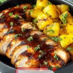 A delicious Hawaiian BBQ Chicken recipe featuring grilled boneless, skinless chicken breasts seasoned with aromatic spices, topped with tangy BBQ sauce, juicy pineapple chunks, red onions, and melted mozzarella cheese. Garnished with fresh cilantro, it’s a perfect balance of smoky, sweet, and savory flavors ideal for a quick and satisfying meal.