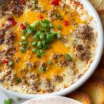 To elevate the presentation and flavor, sprinkle freshly chopped green onions or cilantro over the top. A few diced fresh jalapeños can also add color and extra heat for those who like a little more kick. These simple garnishes add freshness and visual appeal that make the dip even more inviting.