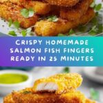 These homemade salmon fish fingers are a delicious and healthier twist on a classic favorite. Made with fresh salmon fillets coated in a crispy Parmesan and breadcrumb crust, they can be baked or fried to golden perfection. Perfect as a snack or a main dish, they’re easy to prepare and sure to please the whole family.