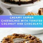 If you want to make your Homemade Samoa Cheesecake with Chocolate Layer Recipe ahead of time, it freezes beautifully. Wrap individual slices in plastic wrap and foil, then store in a freezer-safe container. Frozen cheesecake can be kept for up to 2 months.
