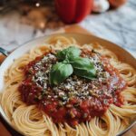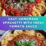 This homemade spaghetti recipe features freshly made pasta paired with a rich, flavorful tomato sauce infused with garlic, herbs, and a hint of spice. Perfectly suited for a comforting family dinner, the sauce is simmered to meld the flavors together and served topped with fresh basil and grated Parmesan cheese for an authentic Italian touch.