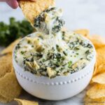 If you want to keep this Hot Spinach Artichoke Dip Recipe on hand for longer, it freezes well. Transfer the cooled dip into freezer-safe containers or bags and freeze for up to 3 months. Just remember that the texture may be slightly softer after thawing.