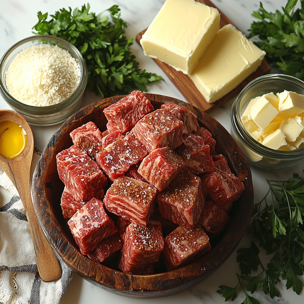 Indulgent Garlic Butter Steak Bites with Spicy Cajun Pasta is a decadent and flavorful dish featuring tender sirloin steak cubes seared to perfection, combined with a rich, creamy Parmesan and garlic butter sauce infused with Cajun spices. This meal perfectly balances the heat from the Cajun seasoning with the silky smoothness of heavy cream and cheese, served atop rotini pasta that captures every bit of the luscious sauce. Ideal for a comforting dinner that feels gourmet yet is easy to prepare within 45 minutes.