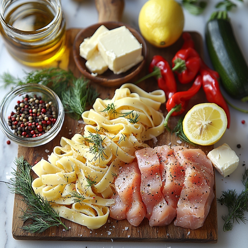 How to Make Indulgent Lemon Dill Chicken Alfredo with Roasted Red Pepper Whipped Feta and Parmesan Zucchini Recipe
