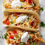 - Assemble tacos: Warm the tortillas if desired, then spoon the shredded chicken mixture onto each tortilla. Top with shredded cheese, cilantro, avocado, red onions, lettuce, a dollop of sour cream or Greek yogurt, and a squeeze of lime juice. Serve immediately and enjoy!