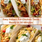 This Instant Pot Chicken Tacos recipe delivers a quick, flavorful meal perfect for busy weeknights. Tender chicken breasts are cooked in a zesty tomato and green chili sauce with a blend of Mexican spices, then shredded and served with your favorite fresh toppings and tortillas for a delicious homemade taco experience.