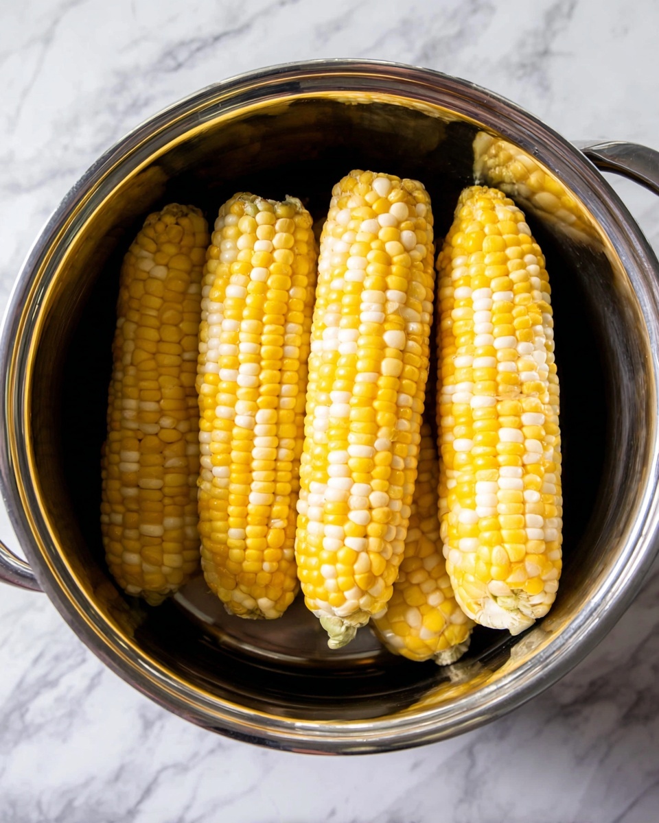 - 4 cobs of corn: Fresh ears with husks and silks removed, offering the natural star of the dish with sweet, crisp kernels.