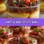 This Irresistible Chipotle Beef Potato Bowls recipe combines spicy, smoky chipotle beef with creamy mashed or roasted potatoes for a flavorful and satisfying meal. Perfect for meal prep, it features tender ground beef seasoned with chipotle peppers, cumin, and smoked paprika, layered over comforting potatoes and topped with cheddar cheese, avocado, sour cream, and fresh cilantro. Ready in just 35 minutes, this dish delivers 5-star taste and hearty nutrition, ideal for a quick dinner or make-ahead lunches.