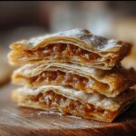 Preheat your oven to 375°F (190°C) and line a baking sheet with parchment paper. Roll out the chilled dough on a floured surface to about 1/8 inch thick. Cut into 6-inch circles, then spoon about 2 tablespoons of the cooled filling onto one half of each circle. Brush the edges lightly with water to help seal, fold the dough over the filling, and press the edges firmly with a fork for that classic crimped look.