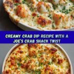 Joe’s Crab Shack Crab Dip is a rich, creamy, and cheesy appetizer featuring lump crab meat blended with a luscious mixture of cream cheese, mayonnaise, sour cream, and flavorful seasonings. This warm dip, baked until bubbly and golden, is perfect for parties or casual gatherings, served alongside tortilla chips, crackers, or crusty bread.