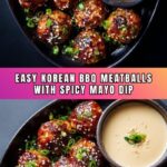 - Serve: Transfer the cooked meatballs to a serving dish or shallow bowl. Optionally drizzle with a bit more BBQ sauce. Garnish with chopped green onions and sesame seeds. Serve alongside the spicy mayo dip for dipping.