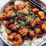 Finish strong by sprinkling toasted sesame seeds and chopped green onions over the sauced chicken. Not only do these garnishes add texture and a burst of fresh color, but they also elevate the dish with subtle, complementary flavors that make each bite unforgettable.