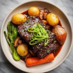 Finish your Korean Style Pot Roast Recipe with bright chopped green onions and a sprinkle of toasted sesame seeds. These garnishes add freshness, color contrast, and a satisfying crunch that brings the whole dish together.