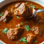Return the browned lamb to the pot, making sure it’s covered with the sauce. Cover the pot and let the curry simmer gently on low heat for 1 1/2 to 2 hours, or until the meat is tender and the sauce thickens to a velvety consistency. Patience here rewards you with beautifully tender and flavorful lamb.