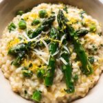 This Lemon Asparagus Risotto is a creamy and flavorful Italian classic perfect for spring. With tender arborio rice cooked slowly in broth and infused with fresh lemon zest, juice, and crisp asparagus, it offers a bright, refreshing dish that’s both comforting and elegant. It works wonderfully as a main course or a side dish and is suitable for vegetarians.