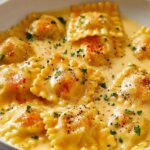 This Lobster Ravioli in Garlic Butter Sauce is a decadent Italian-American seafood dish featuring tender lobster-filled ravioli enveloped in a rich and creamy garlic butter sauce, enhanced with Parmesan cheese, white wine, and a hint of lemon. Perfect for a special occasion or an elegant weeknight dinner.