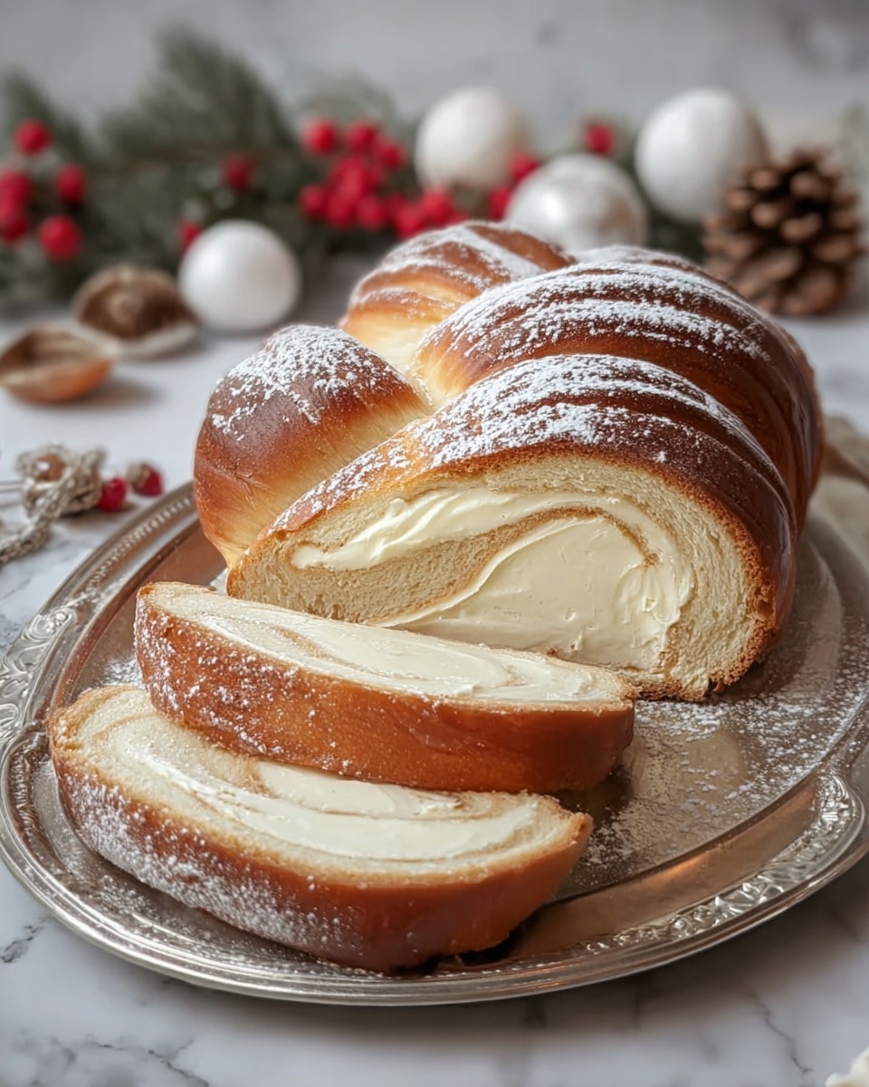 If you want to add a little sparkle to your mascarpone cheese babka, a simple dusting of powdered sugar does wonders. For an even more elegant touch, sprinkle some toasted almond flakes or a drizzle of honey right before serving to complement the creamy filling.