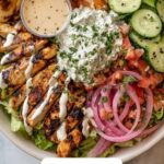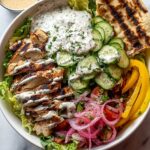 Presentation is everything when it comes to Mediterranean Chicken Tzatziki Bowls Recipe. Top your bowl with generous crumbles of tangy feta cheese and a dollop or two of creamy tzatziki sauce. Add vibrant slices of peperoncini for a kick or some sweet cherry tomatoes and thinly sliced red onions for extra color and flavor. A sprinkle of fresh herbs like dill or oregano can elevate the visual appeal and taste even more.