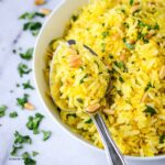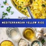 This Mediterranean Yellow Rice recipe is a fragrant and flavorful side dish infused with turmeric, cumin, and paprika, enhanced by fresh herbs and toasted pine nuts. Perfectly tender basmati rice cooked to fluffy perfection makes it an ideal accompaniment for Mediterranean-style proteins like lamb koftas or Greek chicken kabobs.