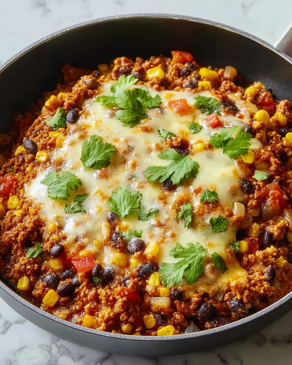 This Mexican Beef and Rice Skillet is a flavorful and easy one-pan meal combining seasoned ground beef, rice, black beans, corn, and tomatoes, all cooked together in a skillet and topped with melted cheese. Perfect for a hearty weeknight dinner with vibrant Mexican-inspired flavors and customizable toppings.