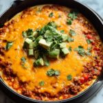 Freshly chopped cilantro, a scoop of creamy sour cream, and thinly sliced jalapeños are fantastic garnishes that add contrast and freshness. They bring cool, vibrant accents that harmonize with the casserole’s warm, cheesy layers.