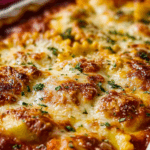 Million Dollar Ravioli Casserole is a comforting, cheesy baked dish featuring layers of frozen cheese ravioli, seasoned ground beef marinara sauce, and a creamy ricotta mixture, topped with melted mozzarella and Parmesan cheese. Perfect for a family-friendly dinner, this hearty casserole combines rich flavors and simple ingredients for an easy, crowd-pleasing meal.