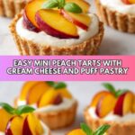 Delight in these Mini Peach and Cream Cheese Tarts, featuring flaky puff pastry filled with a smooth cream cheese mixture and topped with fresh, juicy peach slices. Finished with a shiny honey glaze, these tarts make a perfect elegant dessert or a sweet snack ideal for summer gatherings.