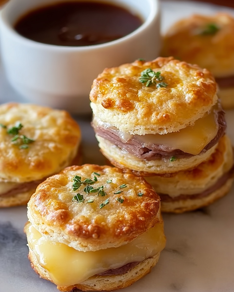 For parties or game day, serve these biscuits on a wooden platter with small cups of au jus for individual dipping. You can also turn them into sliders by adding caramelized onions or sautéed mushrooms inside for an extra savory twist. They make fantastic finger foods that everyone will love.