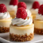- Serve: Carefully remove the mini cheesecakes from the molds. Garnish with whipped cream and extra fresh raspberries if desired before serving.