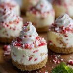 These No-Bake Peppermint Cheesecake Bites are a deliciously creamy and festive holiday treat. Featuring a crunchy graham cracker crust and a smooth peppermint-flavored cheesecake filling studded with crushed candy canes, these bite-sized delights require no baking and are perfect for quick, refreshing desserts or party snacks.