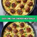 This One Pan Chicken Meatballs recipe offers a delicious and easy dinner solution featuring tender chicken meatballs simmered in marinara sauce, topped with melted mozzarella cheese, and baked to perfection in a single skillet. Perfect for a quick weeknight meal, it combines Italian-inspired flavors with simple ingredients for a satisfying and hassle-free dish.