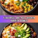 This one-pot chicken burrito bowl recipe is a quick and delicious Tex-Mex inspired meal featuring tender chicken, rice, black beans, corn, and flavorful spices all cooked together in a single skillet. It’s a convenient and healthy dinner option topped with melted cheese and customizable garnishes like avocado, sour cream, and cilantro.