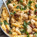 A rich and comforting one-pot creamy sun-dried tomato chicken pasta recipe featuring tender chicken pieces, savory sun-dried tomatoes, fresh spinach, and a luscious cheese sauce, all cooked together for an easy and flavorful meal perfect for weeknights.