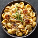 Once the pasta is tender and most of the liquid is lovingly absorbed, stir in the heavy cream along with both Gruyère and Parmesan cheeses. Stir continuously until the cheeses melt completely into a luscious, creamy sauce. The sauce should be velvety and rich, coating every piece of pasta perfectly.