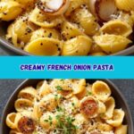 This One Pot French Onion Pasta is a creamy, comforting dish featuring deeply caramelized onions, tender pasta, and a blend of Gruyère and Parmesan cheeses. Inspired by classic French onion soup flavors, this simple stovetop recipe combines savory broth, garlic, thyme, and balsamic vinegar for a rich and delicious meal that’s perfect for an easy weeknight dinner.