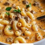 This One-Pot Macaroni Cheeseburger Soup combines the comforting flavors of a classic cheeseburger with the heartiness of a creamy soup. Packed with ground beef, tender potatoes, rich cheddar cheese, and a blend of savory seasonings, it’s an easy-to-make, satisfying meal perfect for chilly days or family dinners.