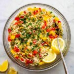 This salad isn’t the best candidate for freezing because the orzo and fresh vegetables can lose their texture and get mushy once thawed. For best results, keep it refrigerated and enjoy fresh within a few days.