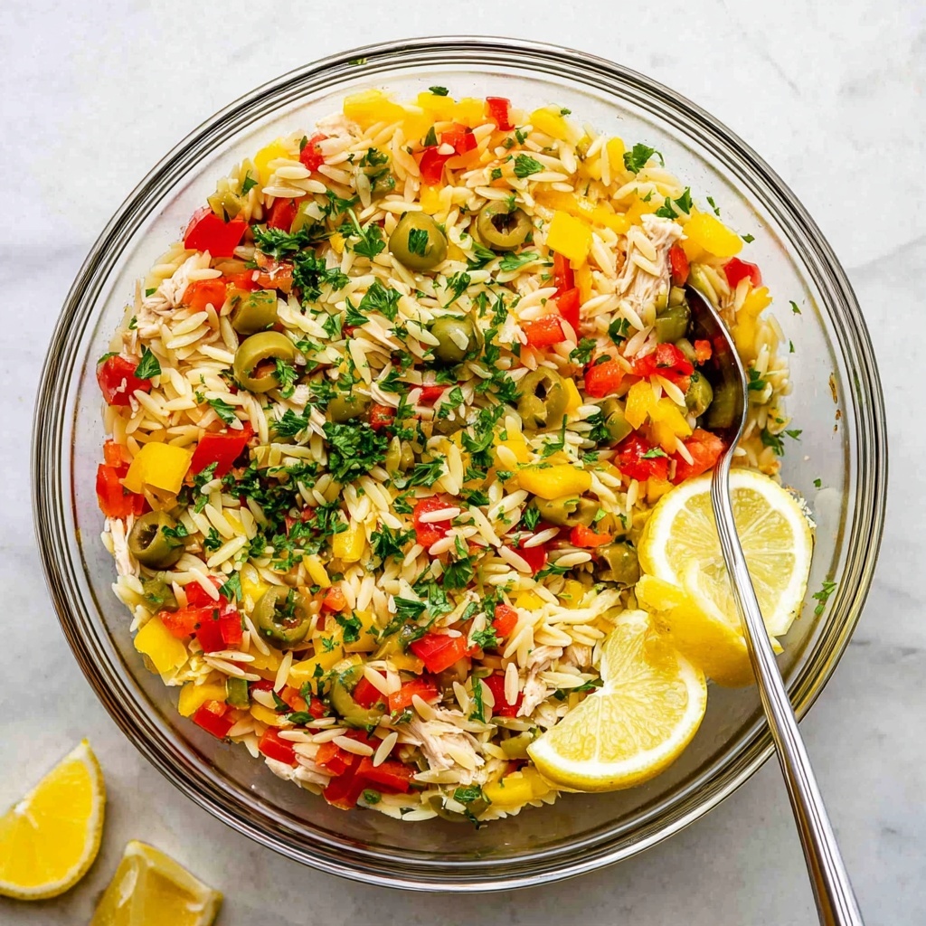 A vibrant and tasty Orzo Chicken Salad packed with colorful vegetables, shredded chicken, and a zesty lemon mustard dressing. Perfect for a quick lunch or light dinner, this salad combines tender orzo pasta with fresh bell peppers, olives, and herbs for a refreshing and satisfying meal.