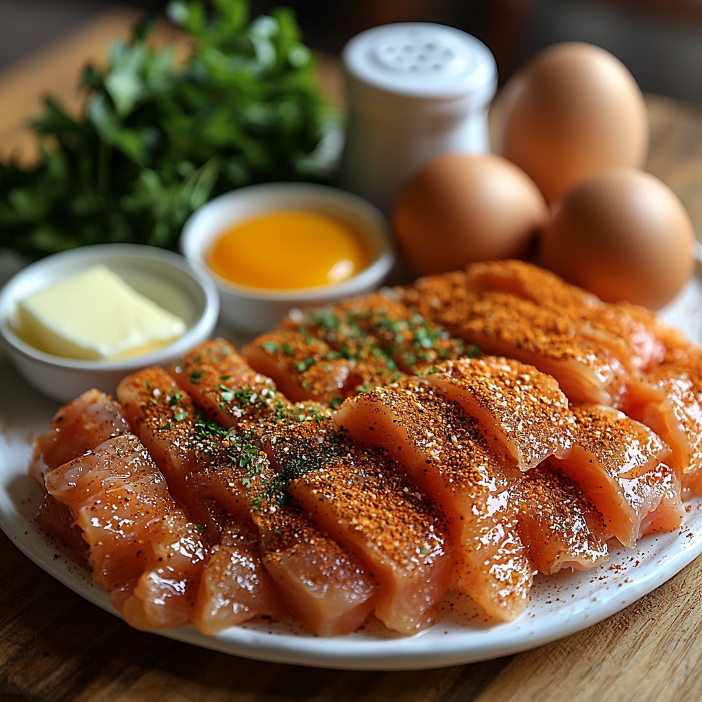Pat the chicken tenders dry with a paper towel and sprinkle them lightly with salt and pepper. This step is key for bringing out the natural flavors in the chicken before it gets coated.