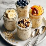 Pour the oat blend evenly into your prepared jars or containers, leaving a little space at the top for the fruit toppings. Portion control is simple, and these individual jars are perfect grab-and-go breakfasts.