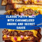 This classic Patty Melt features juicy, seasoned ground beef patties topped with melted Swiss cheese, sweet caramelized onions, and a luscious secret sauce all sandwiched between buttered rye bread and grilled to golden perfection. Perfect for a comforting diner-style meal that’s easy to make at home.