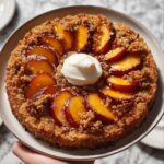 This Peach Cobbler Upside Down Cake combines juicy, spiced peaches with a tender, cinnamon-infused cake and a buttery crumble topping. Baked to perfection and served with homemade whipped cream, this dessert is a delightful twist on traditional cobbler, perfect for any occasion.
