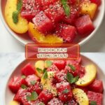 This Peach Watermelon Salad is a refreshing and vibrant dish perfect for warm weather. Combining sweet, juicy watermelon and peaches with the fresh flavors of mint and basil, a hint of tangy lime juice, and optionally topped with crumbled feta cheese, this salad offers a perfect balance of sweet, savory, and herbaceous notes. It’s quick and easy to prepare, making it an excellent choice for light lunches, picnics, or as a side for grilled dishes.