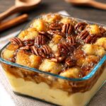 This Pecan Pie Bread Pudding is a decadent dessert that combines the comforting texture of bread pudding with the rich flavors of traditional pecan pie. Cubed day-old bread is soaked in a creamy custard infused with warm spices, topped with a buttery, sugary pecan glaze, then baked to golden perfection. An optional homemade caramel sauce adds an extra layer of indulgence, making this a perfect celebratory treat or cozy family dessert.