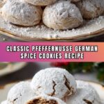 Pfeffernusse Cookies are traditional German spice cookies that feature a blend of warm spices like cinnamon, cloves, nutmeg, and cardamom, combined with molasses and honey for rich sweetness. These small, round cookies are coated in powdered sugar, delivering a perfect balance of spice and sweetness that improves in flavor after a day or two, making them a festive favorite for the holiday season.