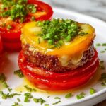 Place a slice or sprinkle shredded provolone over each stuffed pepper half. Then slide the baking sheet into your preheated oven and bake for 10 to 12 minutes. You’re looking for the cheese to melt until it’s bubbly and slightly golden. This finishing step melds all the flavors while adding a luscious, gooey texture that’s simply irresistible.